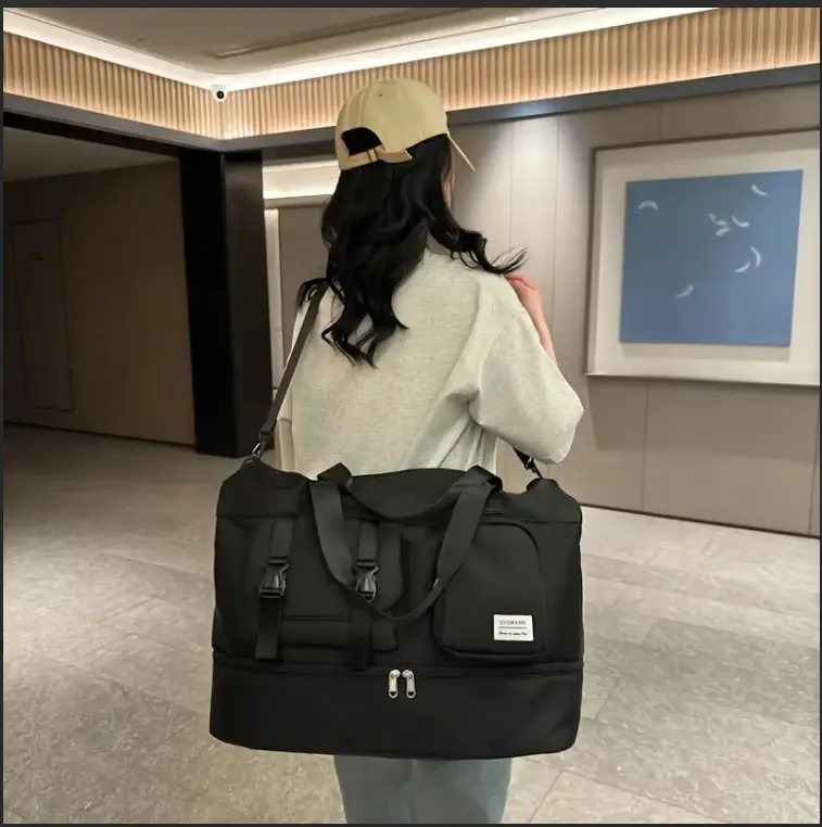 Organizá tus viajes, gym o salidas con el Bolso de Tela Extensible con Base, diseñado para ofrecer más espacio, mayor resistencia y comodidad total 🖤✨